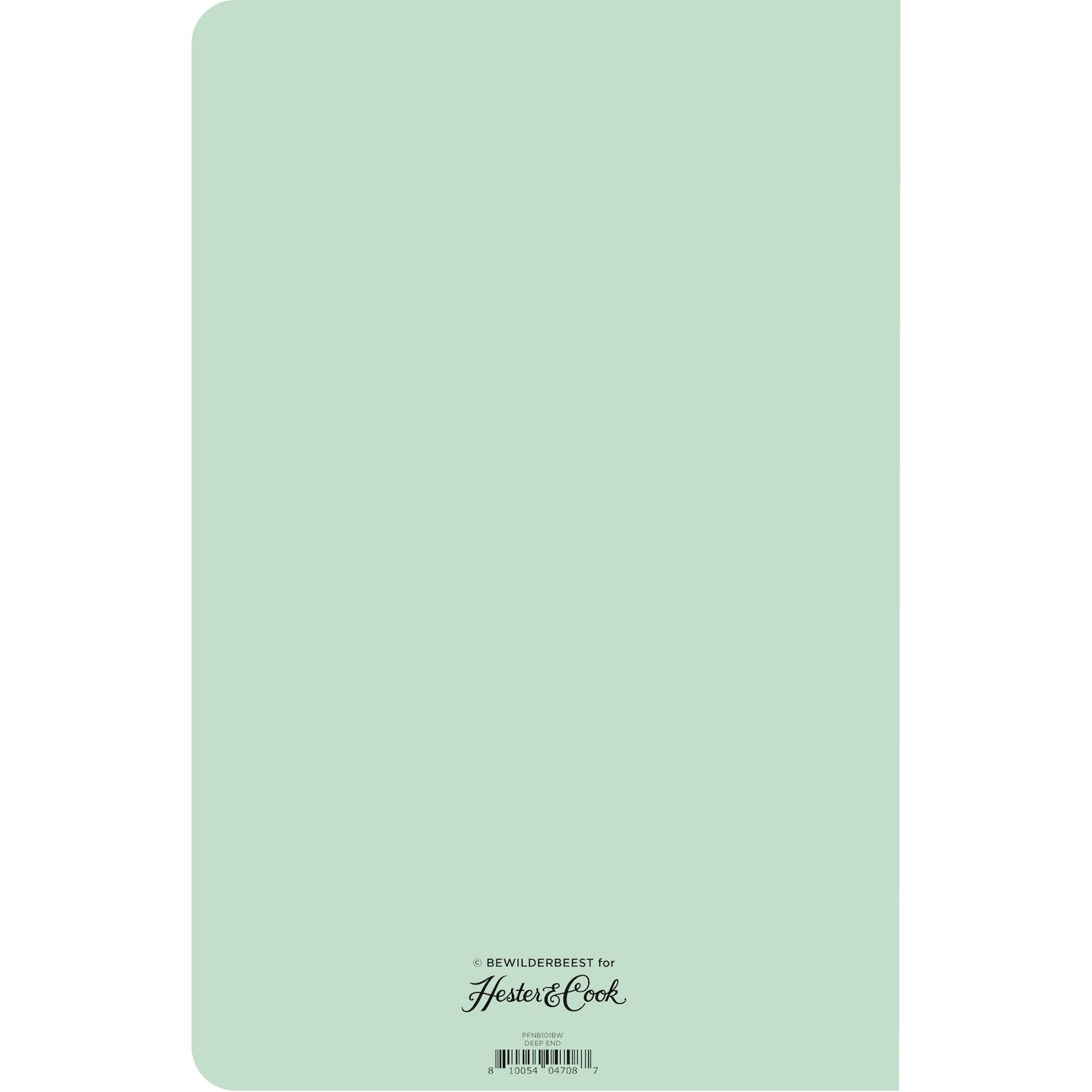 The back cover of the Deep End Notebook is solid mint green with the Hester & Cook logo printed at the bottom.