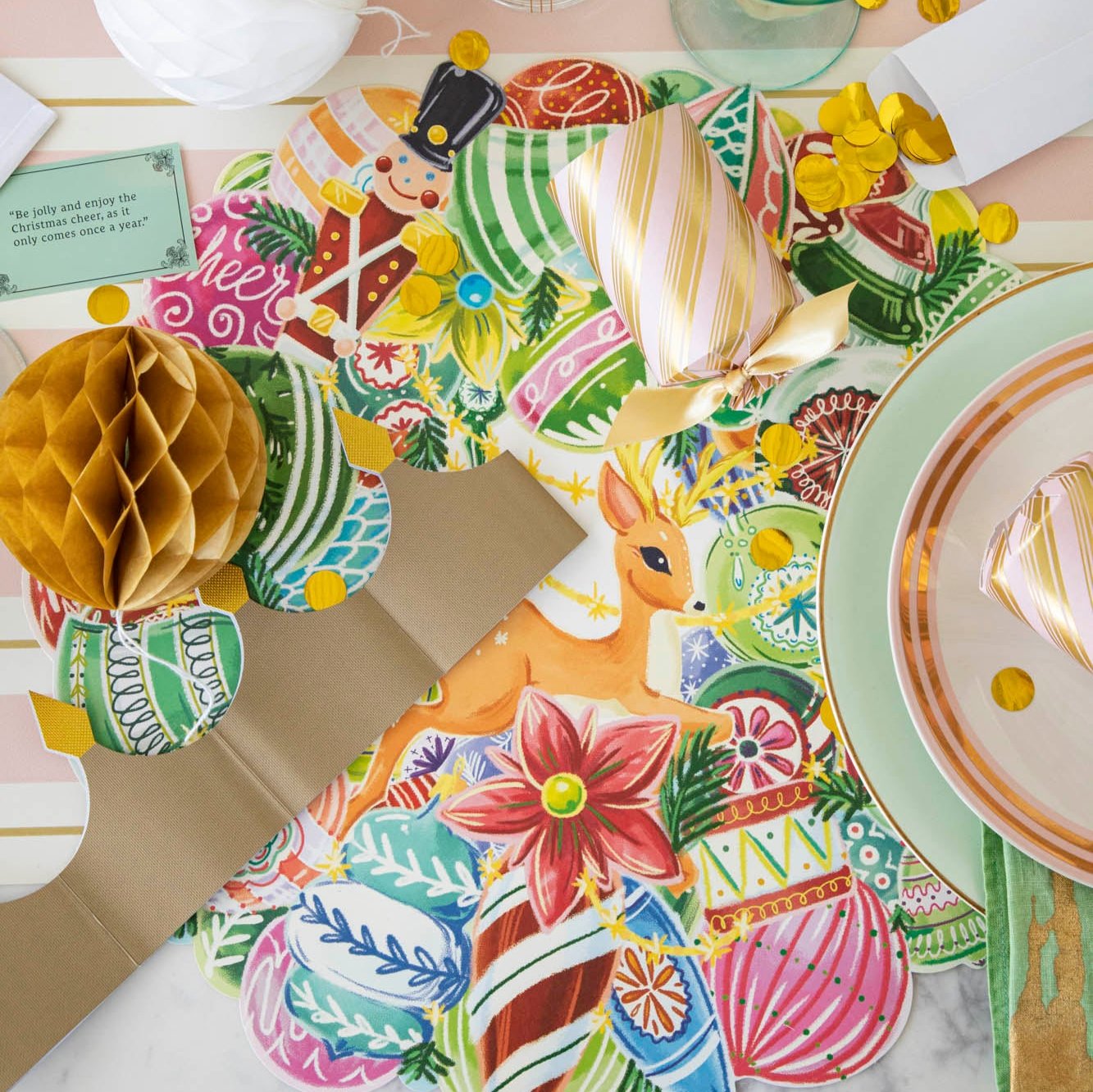 Each cracker contains a festive honeycomb ball, a fun pack of confetti, a gold crown and an inspirational conversation card that will engage your guests around the holiday table.