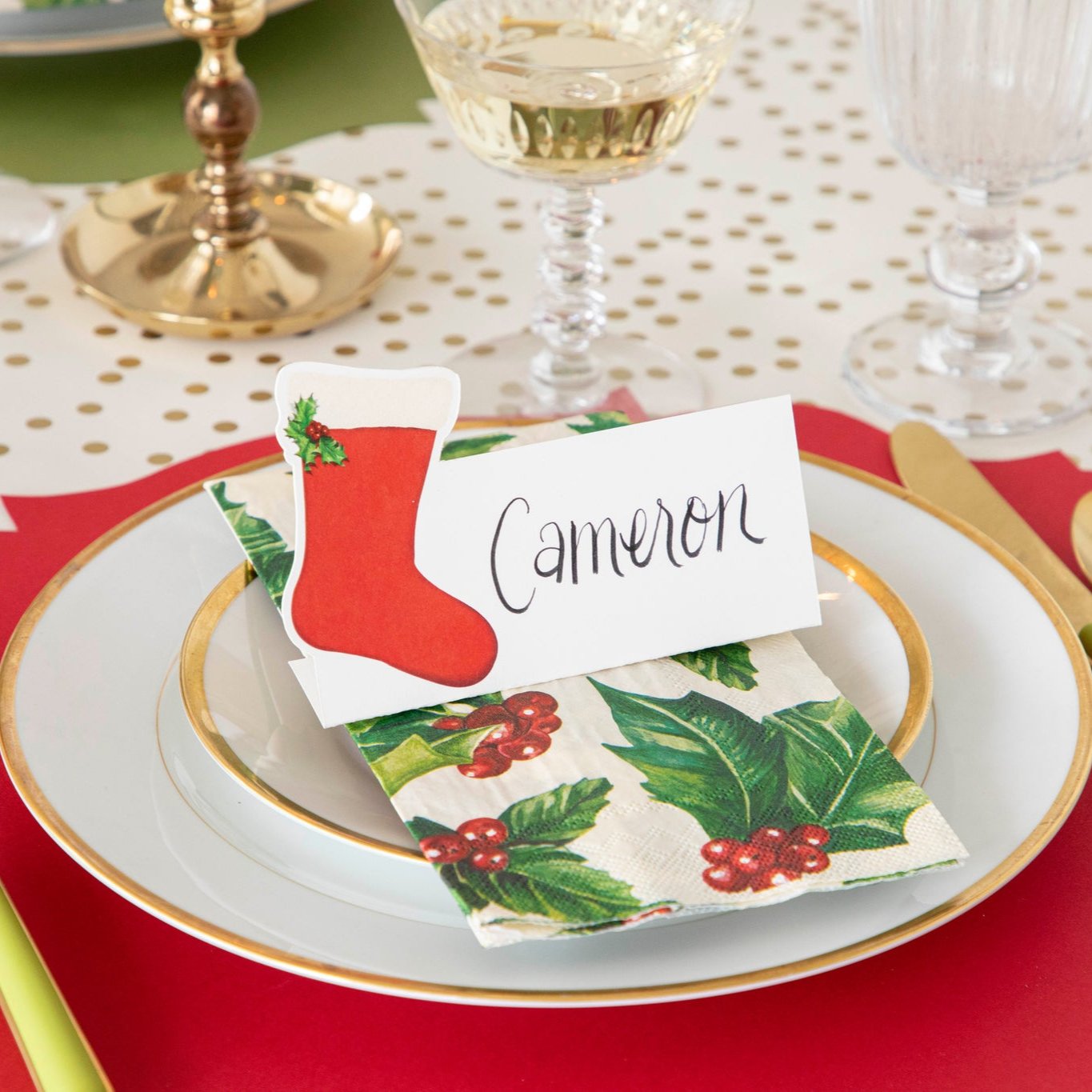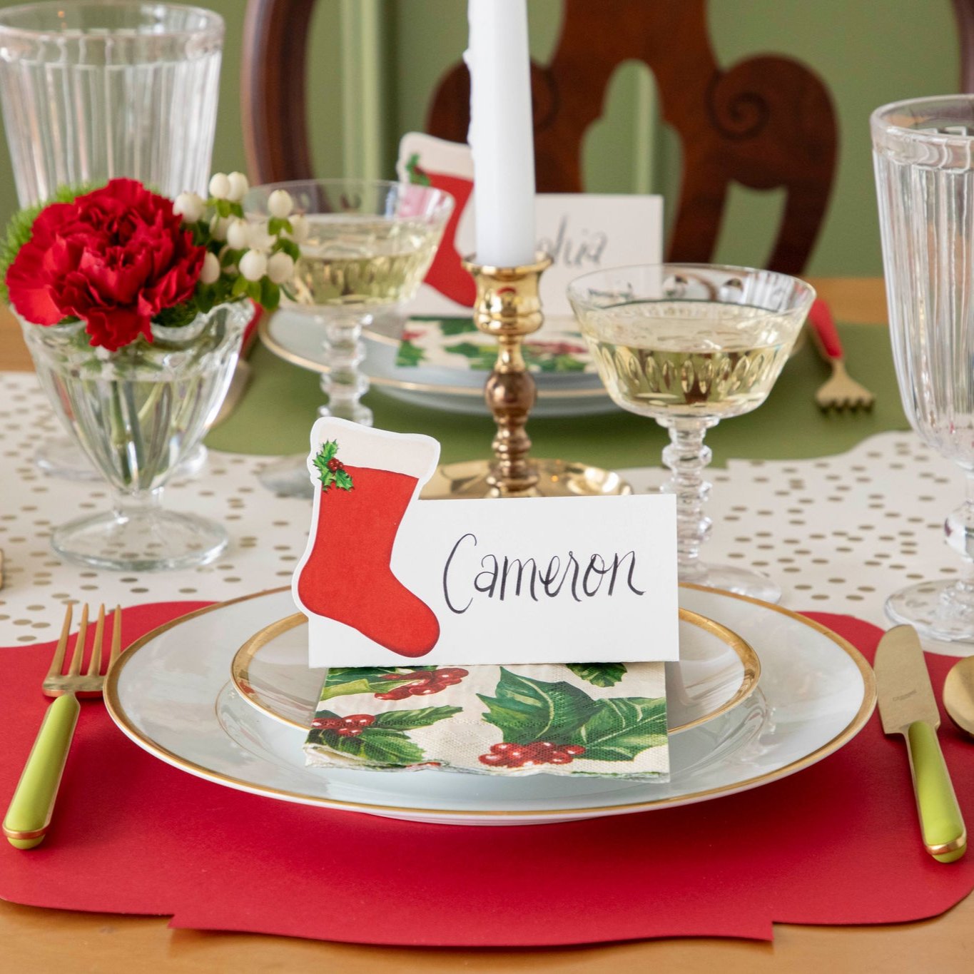 The stockings were set at your table with care! Enjoy these delightful Stocking Place Cards on your holiday table. Guests will be delighted to see their name marking their place at Christmas dinner.