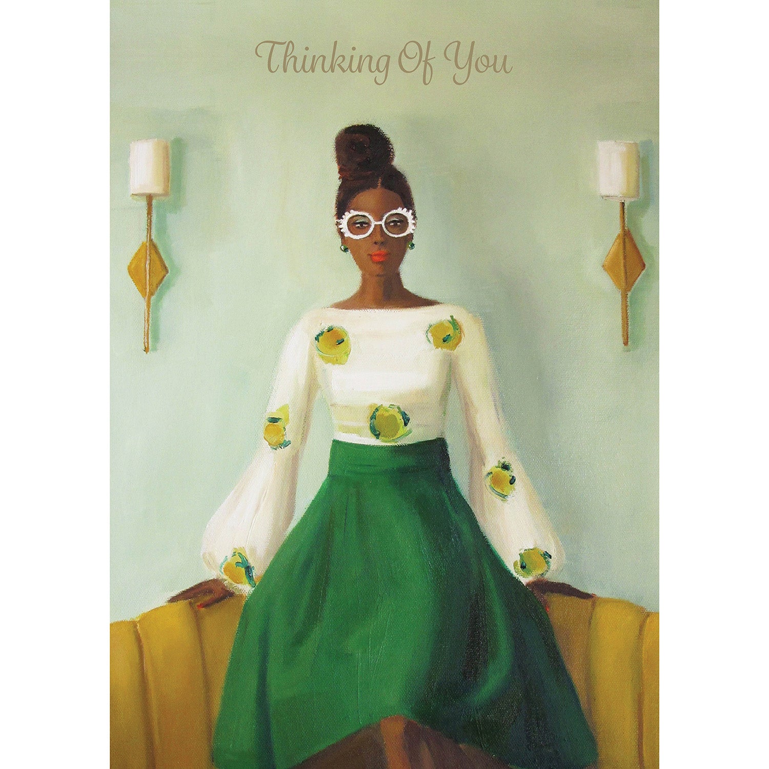 Experience the whimsical worlds of Janet Hill's art in our collection of greeting cards for many occasions. Packaged with a beautiful gold striped, lined envelope, these cards are the perfect way to send any message in style!